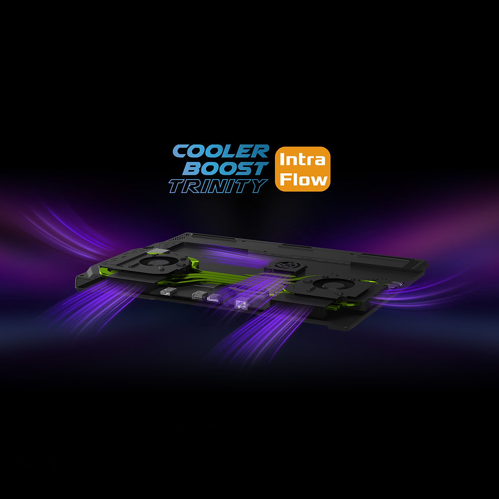 Máy có thể đạt được sức mạnh khủng khiếp như vậy là nhờ được trang bị hệ thống tản nhiệt Cooler Boost Trinity hoàn toàn mới với thiết kế luồng gió Intra Flow đột phá, kết hợp giữa 3 quạt, 6 ống dẫn nhiệt cùng thiết kế 5 khe thoát gió độc quyền, Raider 16 MAX có khả năng làm mát vô cùng ấn tượng nhưng vẫn giữ lại được các cổng kết nối ở cạnh sau của máy để thuận tiện cho việc đi dây cáp.