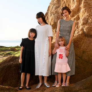 Tiếp nối ý tưởng dành cho người lớn, dòng sản phẩm cho bé gái cũng bao gồm đầm, áo thun và chân váy quần, giúp mẹ và bé tạo nên những khoảnh khắc phối đồ đồng điệu